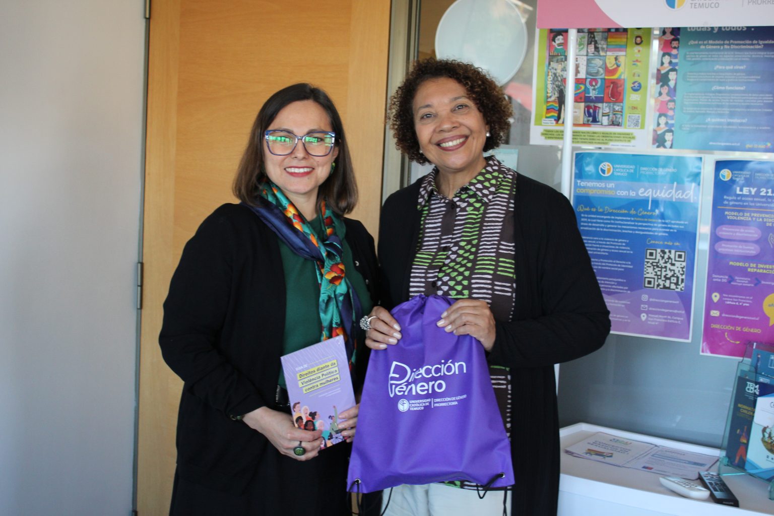 El pasado 21 de noviembre la directora de la Dirección de Género de la Universidad Católica de Temuco, Dra. Olga Carrillo, sostuvo una reunión con la vicerrectora de la Universidad Federal Santa Catarina (UFSC), Dra. Joana dos Passos, para compartir experiencias y desafíos en materia de la incorporación de la perspectiva de género en universidades latinoamericanas.